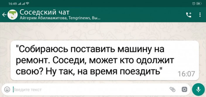 "Соседи, одолжите авто на неделю". Цитаты и истории из WhatsApp-чатов Астаны