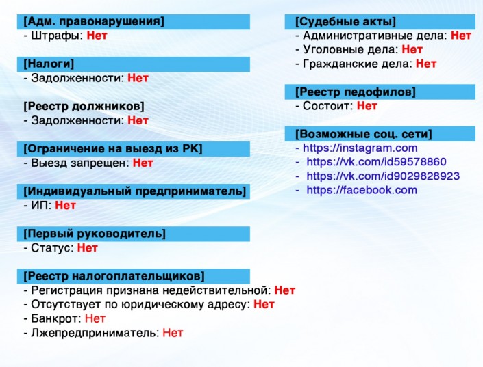 "Сейчас список со своими данными по ИИН вы можете получить в формате PDF. Мы недавно это ввели, так как об этой функции просили пользователи. Также, когда вы проверяете автомобиль, то чат-бот выдает вам текущие цены на бензин. Если вы проверяете юридическое лицо, то бот сообщает курс валют. Если по ИИН ищете, то можете прочитать свой гороскоп на день. Эти фишки я добавил для того, чтобы люди не скучали, пока обрабатывается запрос. Мелочь вроде, но приятно", - отметил Устем Мухавиенов.