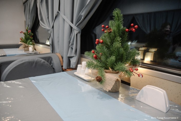 На этом направлении она работает недавно. До того как начать ездить из Алматы в Атырау и обратно, она вместе с коллегами обслуживала рейс Алматы - Петропавловск.