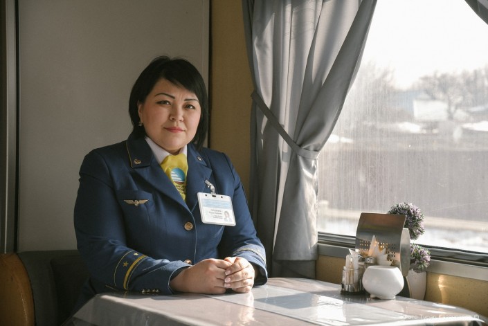 "Сел как-то дедушка в поезд. Без настроения. Возмущается. Я подошла, поздоровалась, вежливо спросила, как у него дела, что мы можем для него сделать? Он сразу изменился в голосе. Подобрел. Сказал: "Вот, сразу видно, что начальник поезда". Он признался, что его все устраивает, поговорил со мной, а потом еще дал бата", - рассказывает Раушан.