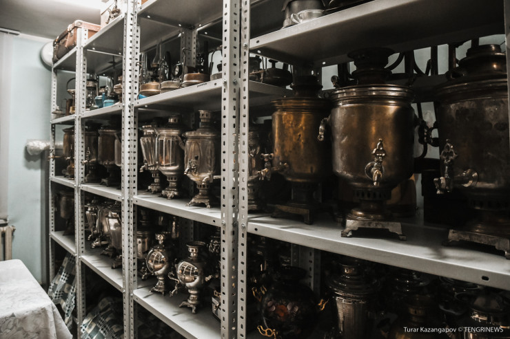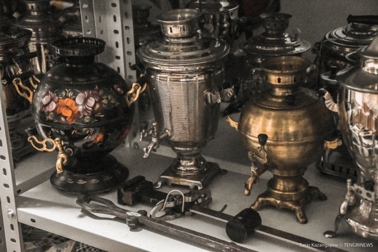 "Приобрели мы ее у частного коллекционера Марата Урстембаева. Самым дорогим считается подстаканник из мельхиора (сплав меди с никелем, иногда с добавками железа и марганца). У каждого есть своя эмблема и клеймо. Например, "м" означает, что город-изготовитель - Москва. "82" - это год изготовления. "Мельх" - это значит, что из мельхиора. Если нам удается найти какой-то новый подстаканник, то мы эту коллекцию пополняем", - объяснила Алтынай Абдрахманова.