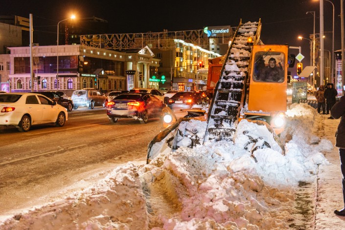 В свою очередь, вывоз снега осуществляется в два этапа. В первую очередь его вывозят с остановок городского пассажирского транспорта, наземных пешеходных переходов, с мостов, мест массового посещения населения, въездов на территории больниц и других социально важных объектов - в течение 24 часов после окончания снегопада. "Окончательный вывоз снега производится по окончании первоочередного вывоза в соответствии с очередностью, определяемой заказчиком. После каждого прохода снегопогрузчика производится операция по зачистке дорожного покрытия у края дороги и у бортового камня от остатков снега и наледи с последующим их вывозом. Вывоз снега с улиц и проездов должен осуществляться на специально подготовленные площадки - снегосвалки. Места под снегосвалки определяются аппаратами акимов районов города по согласованию с природоохранными организациями", - прокомментировали в акимате.