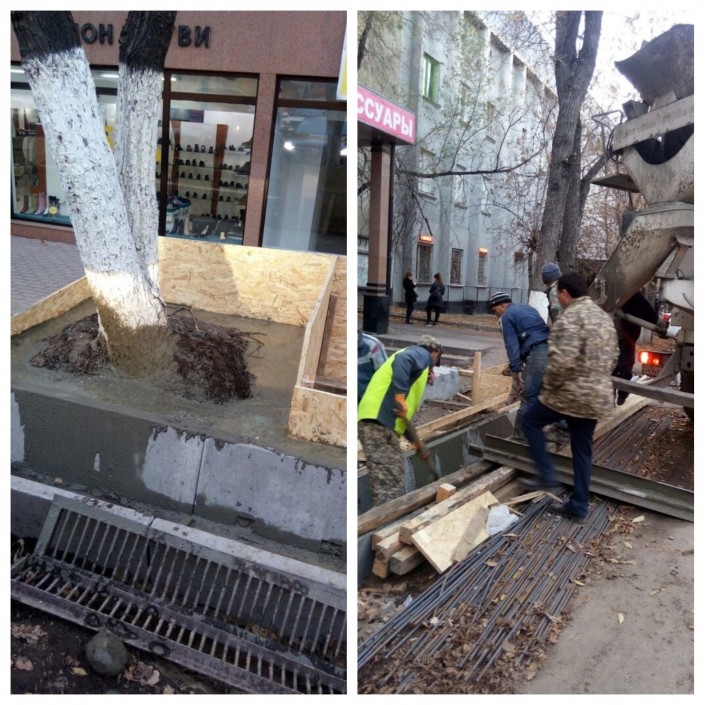 Позже акимат Алмалинского района ответил по поводу "замурованных в бетон" деревьев в центре мегаполиса. Там пояснили, что деревья вовсе не бетонировались. "Деревья не бетонировались, корневая система находится в грунте. Указанные деревья и ранее находились на уровне выше тротуара. При обустройстве тротуара и арыка были выполнены работы по укреплению подпорной стенки", - прокомментировали чиновники. Но читателей ответ акимата не удовлетворил.