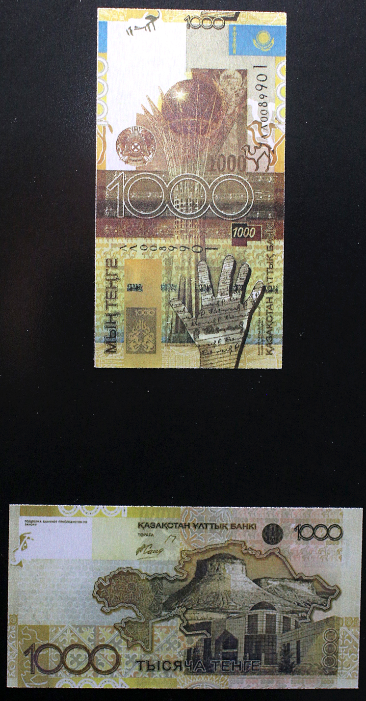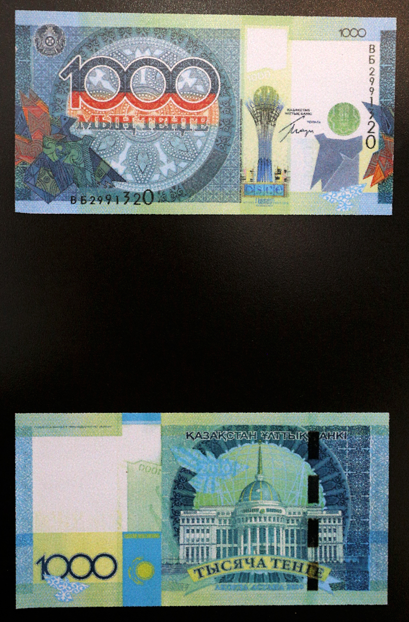 Периодически в обращение выпускались и памятные банкноты, посвященные событиям общегосударственного значения. Тираж этих банкноты всегда был ограничен, также они использовались в качестве апробации новейших защитных элементов. Так, например, три года назад, когда Казахстан возглавил ОБСЕ, была выпущена тысячная банкнота. К 15-летию тенге появилась обновленная пятитысячная купюра - на ней был введен новый защитный элемент SPARK, который признан самым лучшим в мире. По словам дизайнера тенге, этот элемент невозможно подделать, так как в нем используется краска, взятая из космической промышленности. Также он отметил, что после использования Казахстаном этого элемента его начали применять в более 30 крупных странах.