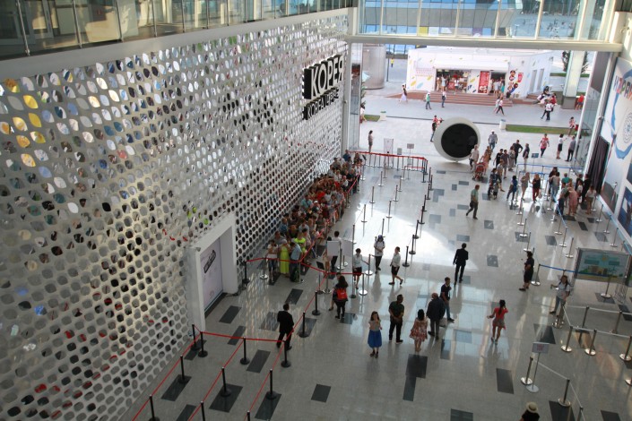 С верхнего этажа, где расположен ресторан, можно разглядеть очередь в павильон.