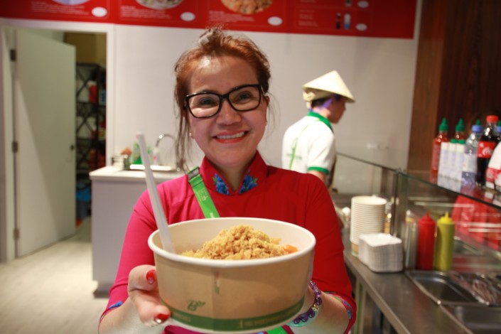 "Попробуйте это блюдо из курицы, очень вкусное", - предлагает хозяйка вьетнамского кафе.
