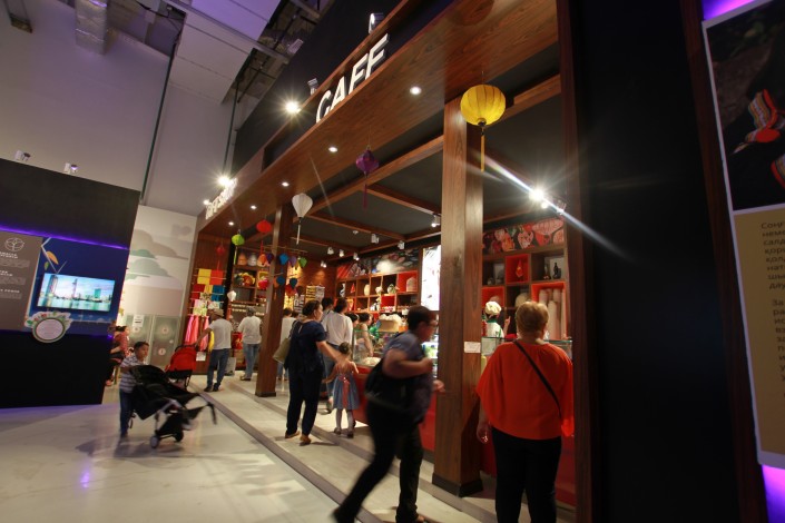 Ознакомившись с экспозицией Социалистической Республики Вьетнам, посетители попадают в сувенирную лавку и небольшое кафе.