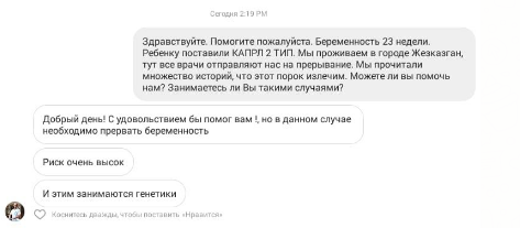 За год в чат "Все будет хорошо" добавилось еще более 100 мам. И еще несколько человек из Казахстана, узнав историю Яна, разыскали Василину. Одна из них - Анастасия из Жезказгана, написала гинекологу в Facebook и получила ответ достаточно бескомпромиссный: