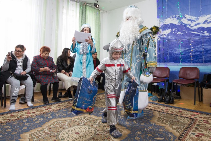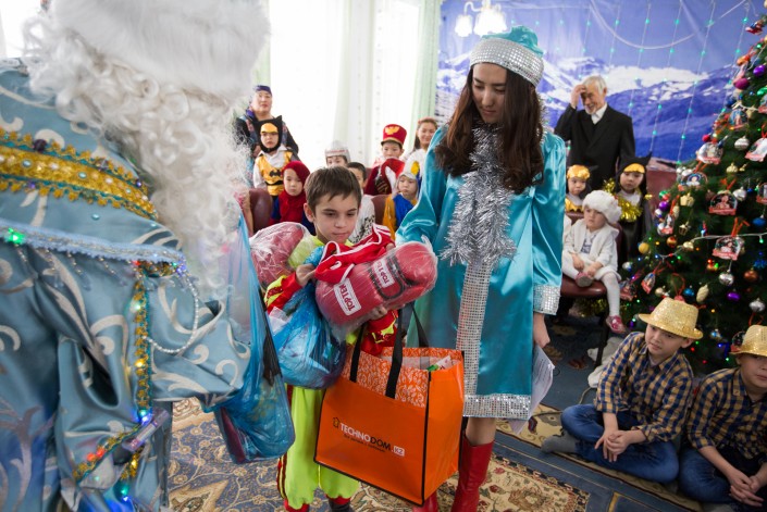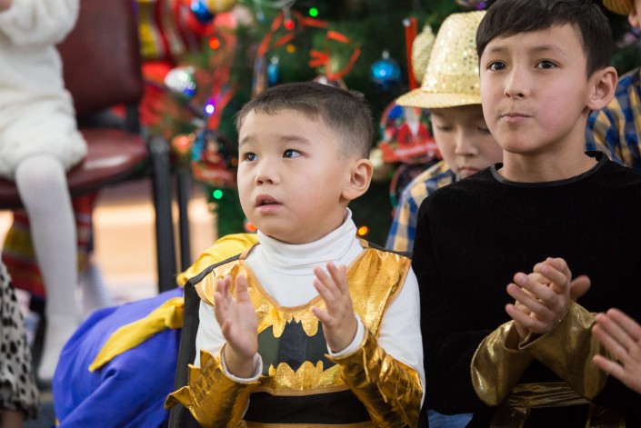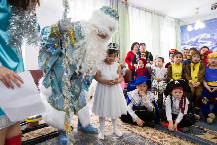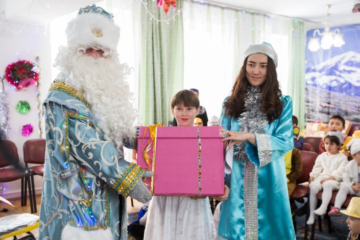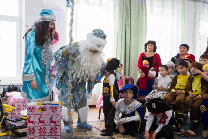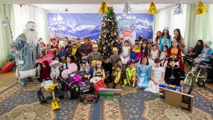 В минувшую субботу, в канун старого Нового года, несколько особенных микроавтобусов въехали в город Талгар, находящийся в 50 километрах от Алматы. В это же время на окраине города, в детском доме "Нур", шли последние приготовления к празднику: дети одевались в костюмы сказочных героев, животных, людей героических профессий, а взрослые наряжали елку.