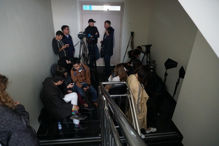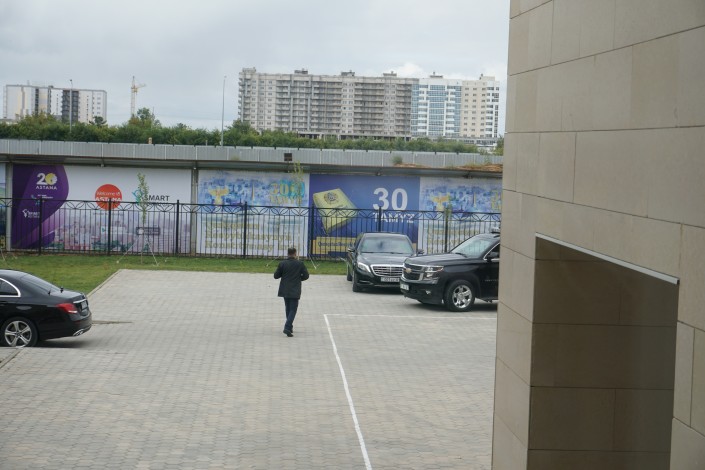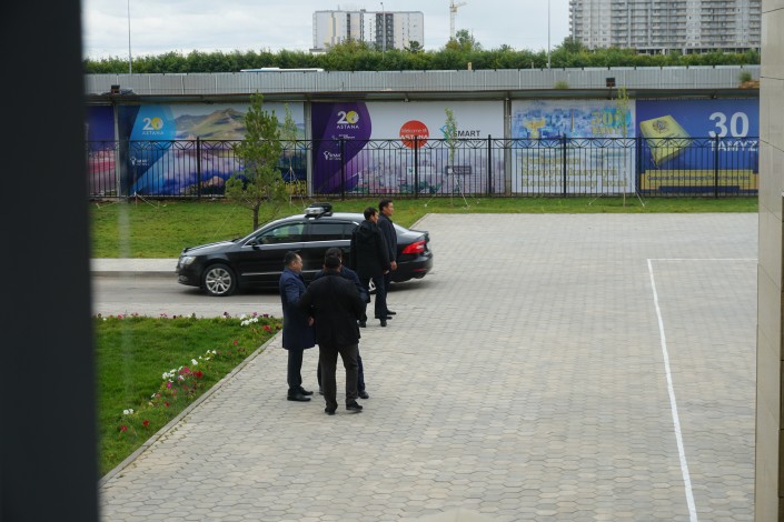 Служба охраны Президента, чтобы не создавать столпотворение, предложила всем журналистам, за исключением пары операторов государственных телеканалов, проследовать в помещение и дождаться там прибытия Нурсултана Назарбаева.