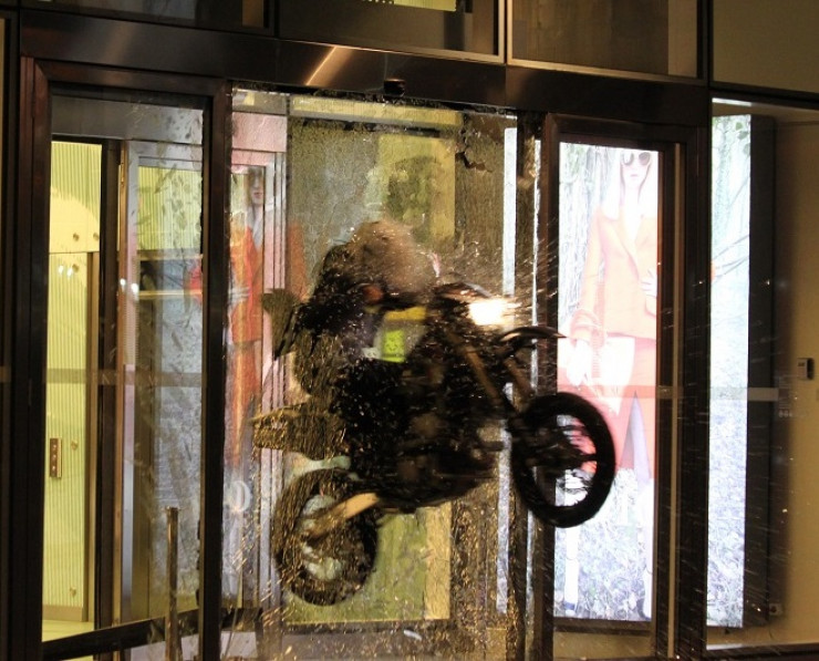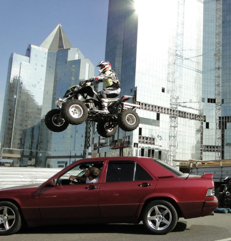 Для эффекта попадания в стены или стекло также ставятся небольшие заряды. Олжас отмечает, что даже взрыв простой бутылки – это довольно сложная задача, так как необходимо обеспечить безопасность. К примеру, на площадке используют каленое стекло, чтобы мелкие осколки не разлетались на большое расстояние.