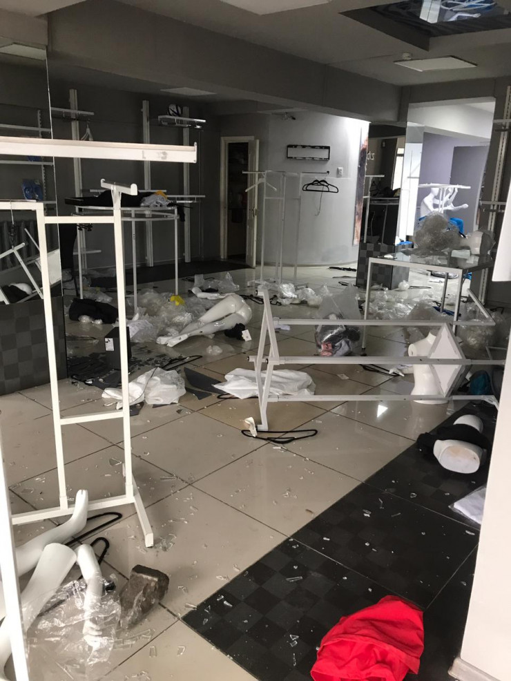 "Это произошло в ночь с пятого на шестое января. У этих людей были дубинки, арматура, с помощью которой они разбили окна. У нас сработала сигнализация, нам позвонили из охранной структуры, сказали, что магазин взломали, но попасть в эту зону они не смогут из-за возникшей ситуации. Потом подъехала машина, нападавшие все туда выгрузили, до единички, включая телевизор. А технику, компьютеры, кассовые аппараты - все это просто разгромили об пол".