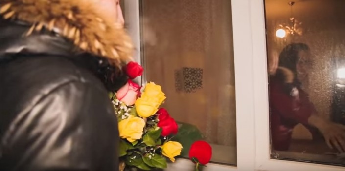 С помощью строительного подъемника молодой человек поднялся с букетом к окну возлюбленной и сделал ей предложение в Астане.