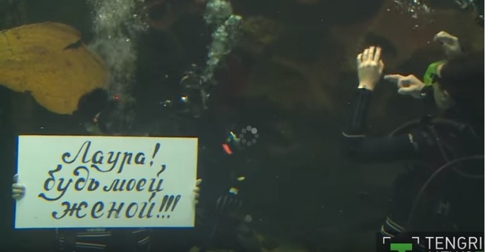 Житель Астаны Канат сделал предложение даме своего сердца на глубине пяти метров в компании акул и рыб.