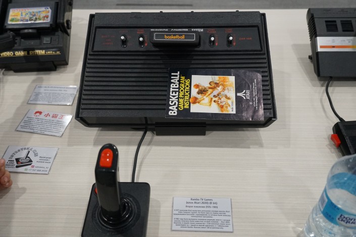 Его импровизированный музей начинается с советской приставки "Электроника", с помощью которой можно было не только поупражняться в стрельбе по мишеням, но и поиграть в пинг-понг.