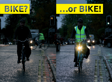 Одеваться надо исключительно в яркие тона, в одежду со светоотражающими вставками. То же самое относится и к рюкзакам. Велорюкзак должен быть ярким и со светоотражающими вставками или полосами. Сзади на рюкзаке может быть красный фонарик (в добавление, а не на замену основному на велосипеде). Кроме того, одежда не должна содержать свободных, развевающихся по ветру частей, которые могут зацепиться за автомобиль или другие предметы.