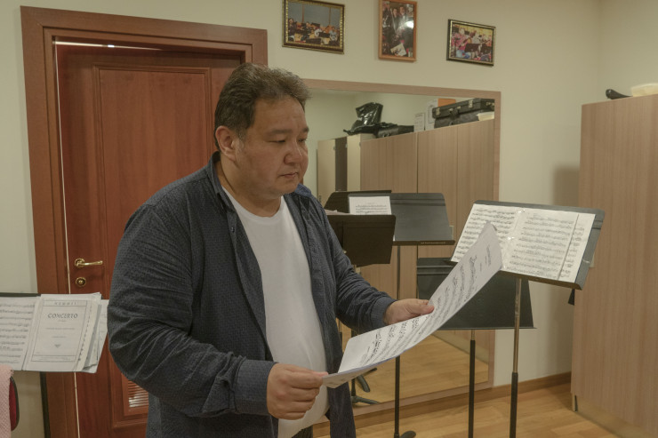 Из кафетерия, который расположен на нижнем этаже театра "Астана Опера", доносится смех. Это опять всех смешит концертмейстер Асет Нельдыбаев. Человек-позитив. Причем шутит и смеется над своими анекдотами он очень искренне, в глазах его всегда блеск, а лицо буквально светится от счастья. Настоящий, живой человек. Сразу хочется брать с него пример, не грустить и радоваться жизни.