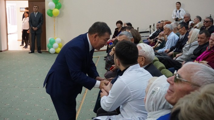 На нижнем фото - его бывший шеф, экс-руководитель Центра социального обслуживания Бапишев. Этого человека пенсионеры сегодня встречали овациями, все-таки он с ними провел очень много времени и стал для них почти как родной.