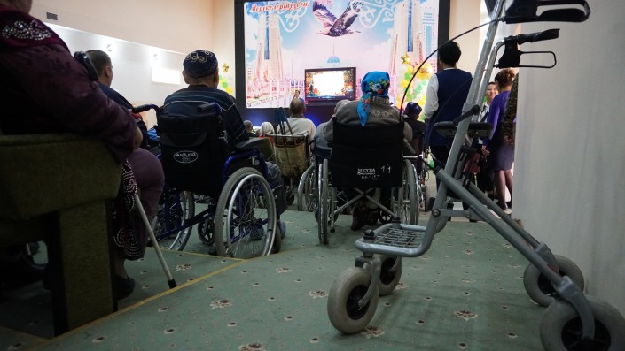 Вместе с другими пенсионерами он пришел посмотреть и послушать концерт, который им подготовил творческий коллектив Национальной гвардии.