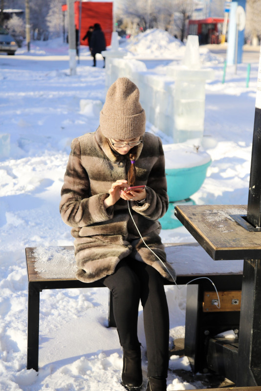 Грибочками она называет такие вот скамейки, на которых имеются специальные USB-слоты для зарядки девайсов.