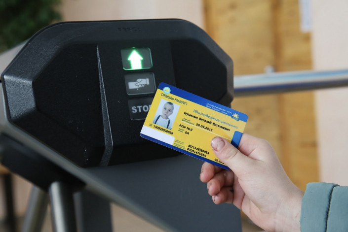 Каждый ученик имеет свою именную карту, с помощью которой, приложив ее к турникету, он может попасть в школу.