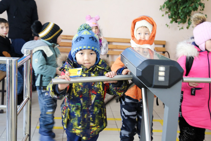 Внутри школ расположены специальные турникеты, которые обеспечивают пропускную систему для школьников.