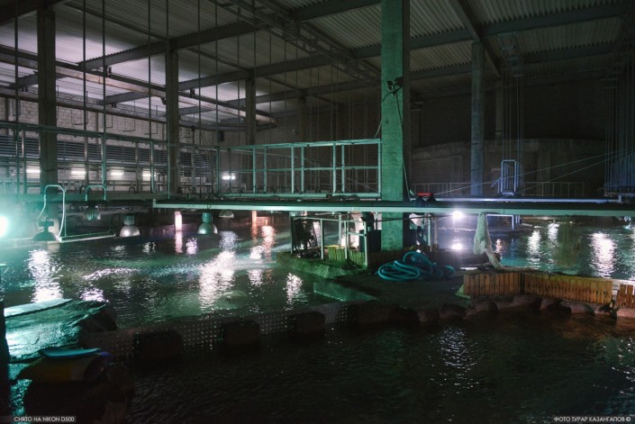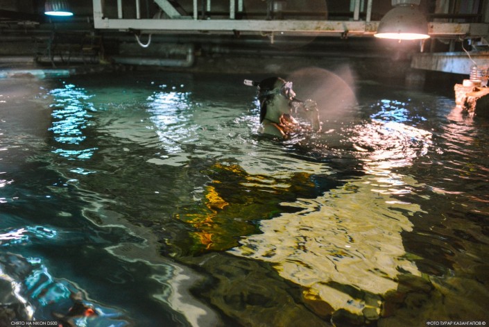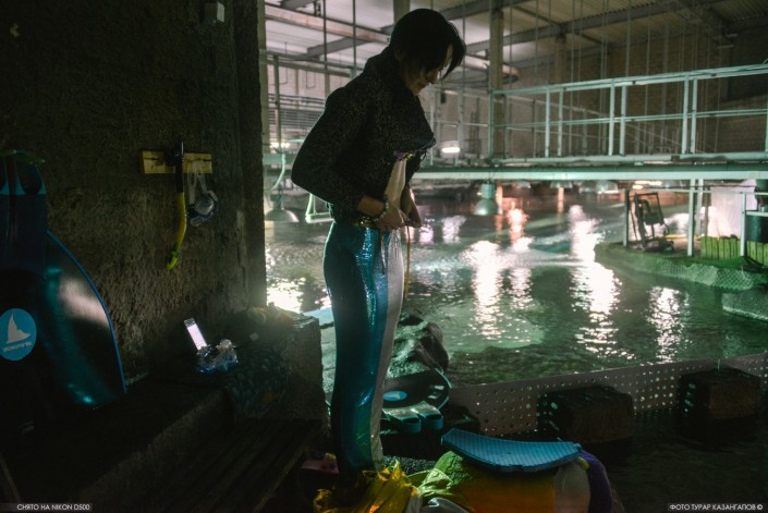 На часах 18.35 по Астане. В 19.00 последний, пятый на сегодня заплыв русалки. Здесь, в подсобке океанариума, мы с фотографом и ждем ее. Чуть дальше по коридору, за железной дверью скрываются бассейны и их обитатели, которых посетители, да и мы сами привыкли видеть за стеклом.