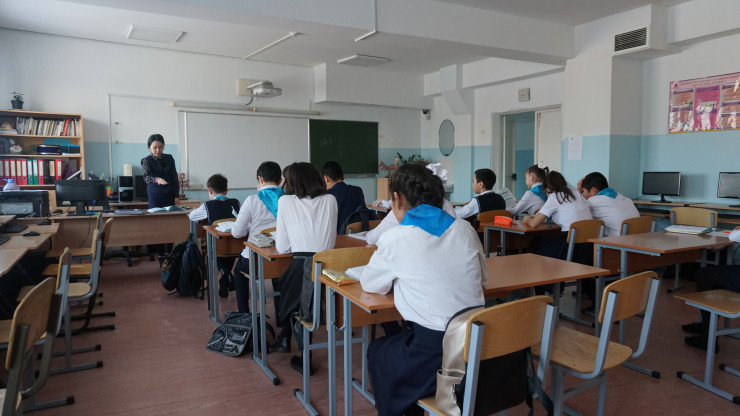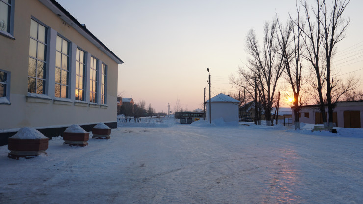 Над школой в районе Коктал заходило солнце.