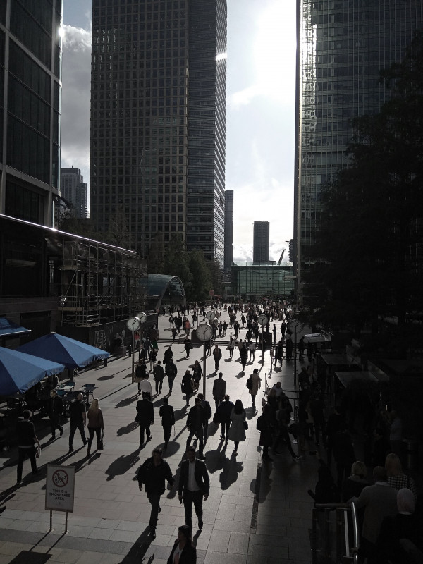 Британская столица разделена на шесть транспортных зон. Первая - самый центр, там не только самая дорогая недвижимость, но и самый дорогой проезд в метро. И далее - все проще и проще. Мы находимся во "второй зоне": вокруг множество небоскребов, здесь много офисов мировых компаний. Как позже пояснит гид во время экскурсии по Сити (исторический центр Лондона), в Сити расположены головные офисы именитых компаний, туда ходят на работу топы; а в небоскребы на Кэнери Ворф ходят "белые воротнички", простые менеджеры.