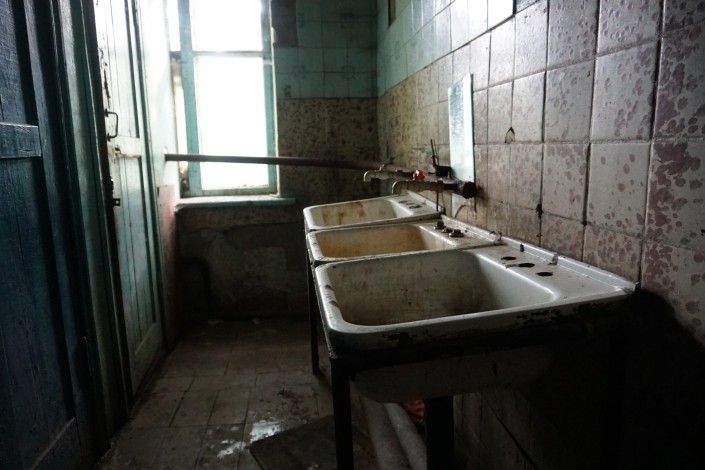 Две туалетные кабины расположены на первом этаже. Одна - для тех людей, которые живут внизу, другая - для тех, кто наверху. Из этических соображений мы не будем показывать состояние самих туалетов, отметив лишь, что в них почему-то нет света.