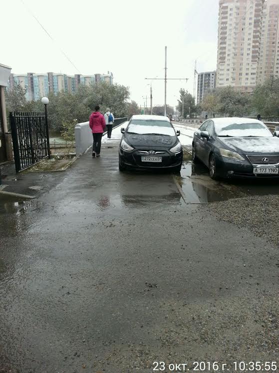 А здесь пешеходы возмущаются неправильной парковкой водителя Honda с дипломатическими номерами. Фото сделано 6 октября возле ЖК "Нурсая".