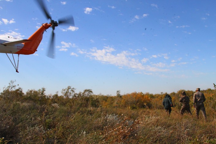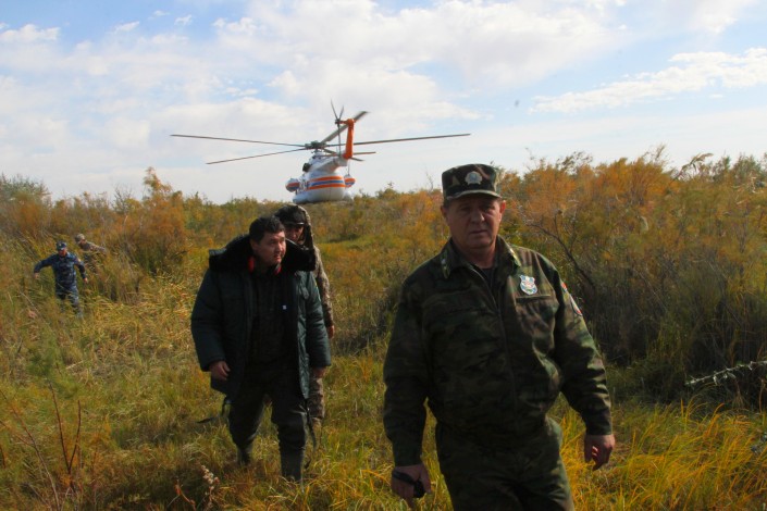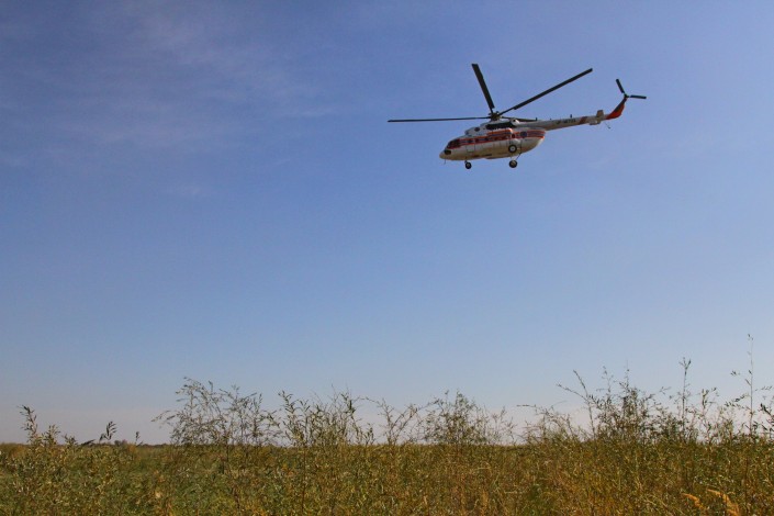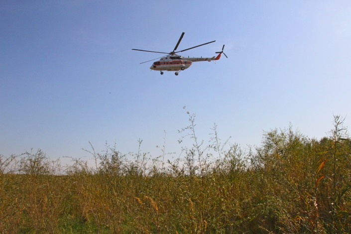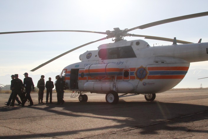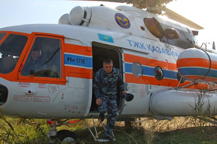 Воскресным утром в 10.00 с аэропорта "Боралдай" близ Алматы в небо для облета территории поднялся Ми171, принадлежащий компании "Казавиаспас". Сама инспекция подчиняется Министерству сельского хозяйства.