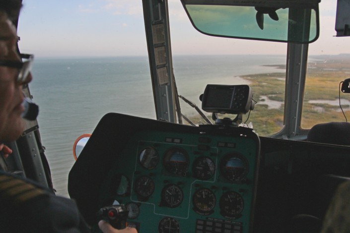На борту вертолета, помимо корреспондентов, находились руководитель и сотрудники Территориальной инспекции области, а также экипаж в составе двух пилотов и диспетчера. Фотографам разрешили осуществлять съемку при открытых дверях воздушного судна.