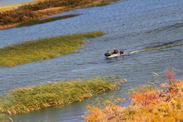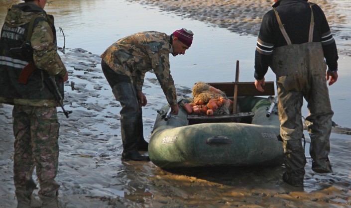 Их было несколько: одни рыбачили на берегу, другие выставили сети и пытались сорвать крупный куш. Увидев в воздухе вертолет, эти двое бросились в бега. Инспекторы заявили, что могли бы подлететь ниже и прижать браконьеров у берега. Однако не стали этого делать, так как те на лодке могли перевернуться.