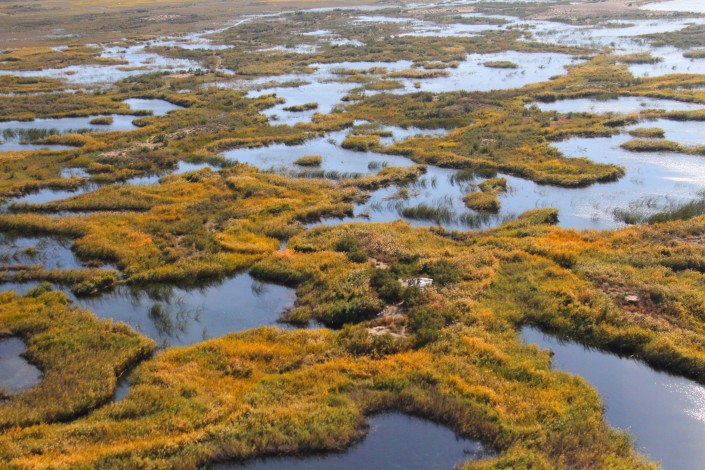 Чтобы быстрее добраться до рыбаков, сотрудникам госинспекции пришлось пройтись по болотистым местам.
