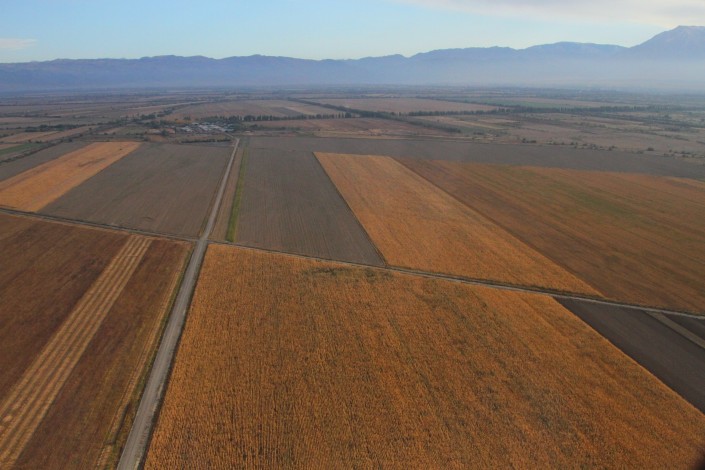 Ближе к городу пейзаж за бортом сменился на сельскохозяйственные угодья.