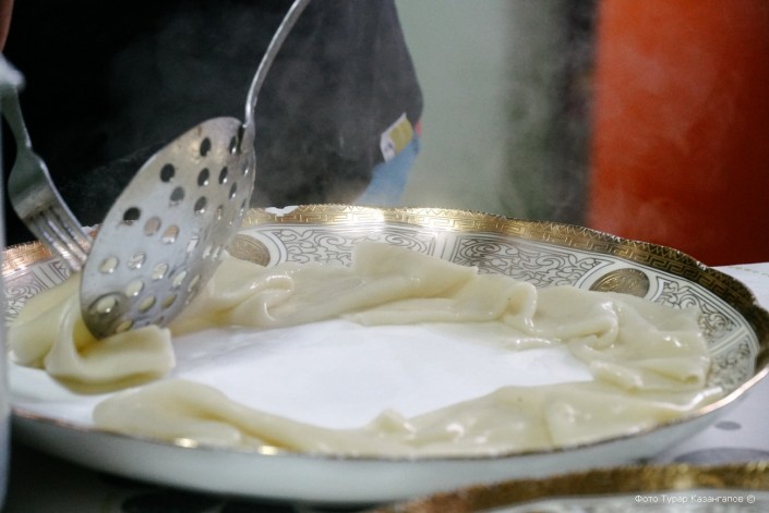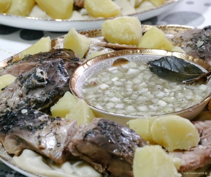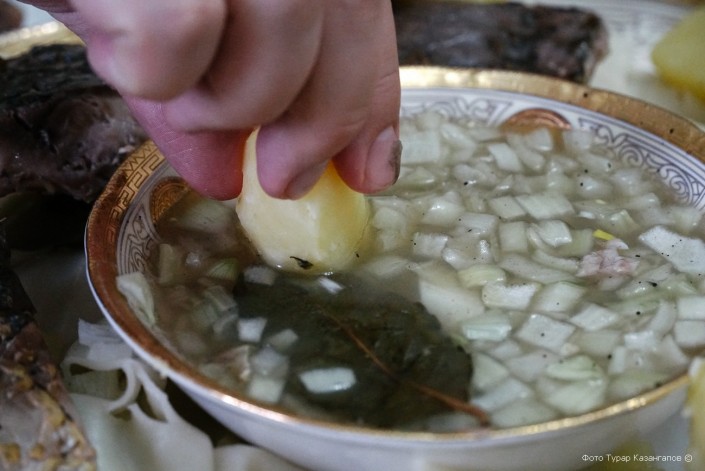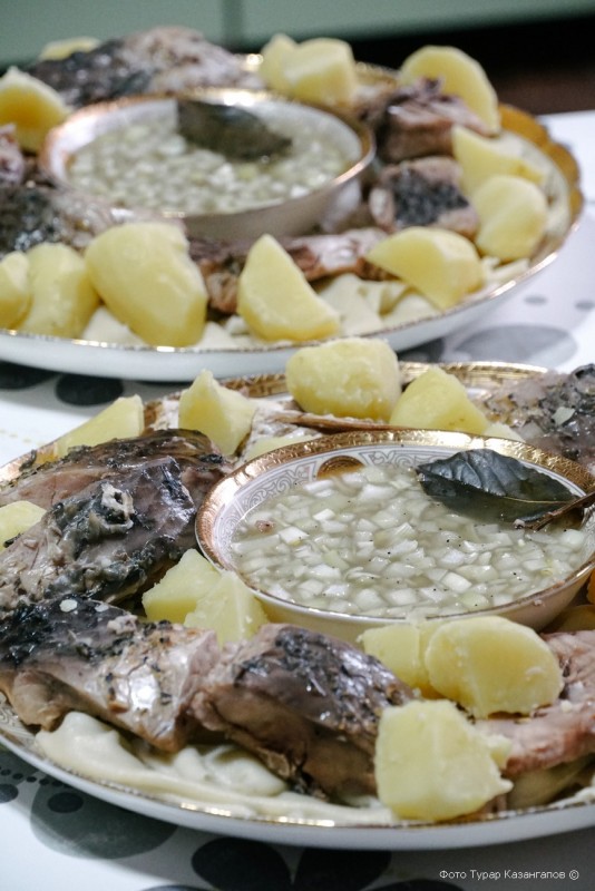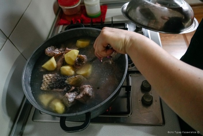Фишбармак - это тот же самый бешбармак, только из рыбы. То же тесто, та же картошка, тот же лук, только вместо мяса - рыба. Тот, кто ни разу не пробовал в своей жизни фишбармак (название современное, получилось из слияния английского fish - рыба, и казахского бармақ - палец), а привык есть только классический вариант, скорее всего, признается, что не может себе представить, каково это рыбное блюдо на вкус. Понимая, что фотографии не передадут запах и вкусовые ощущения, тем не менее мы попытались отснять подробный процесс приготовления фишбармака на его родине - в Атырау. Стоит отметить, что один из главных плюсов бешбармака из рыбы - это то, что готовится он гораздо быстрее, чем тот, что из мяса.