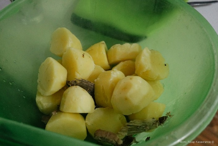 Ждем, когда сварится картошка, а потом достаем и ее из казана.