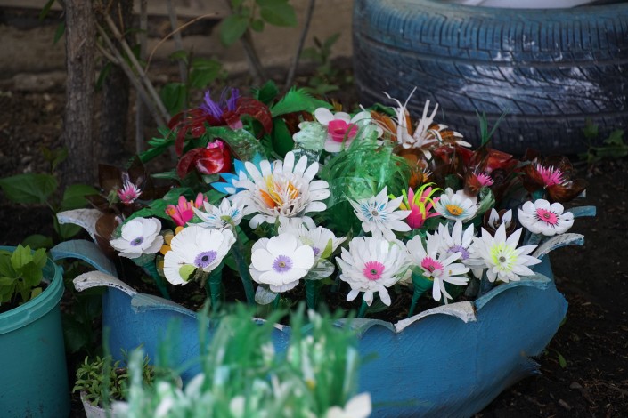 "Это все из пластиковых бутылок. Самые хорошие бутылки от "Сарыагаша", - говорит со знанием дела наша собеседница.