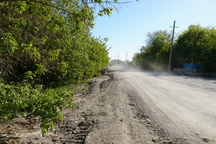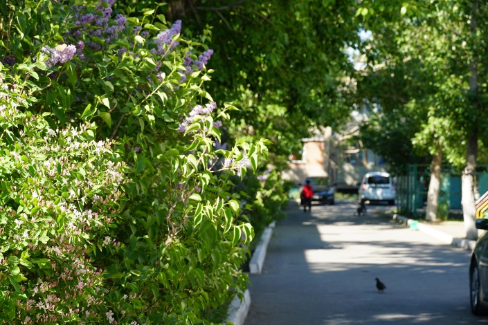 За уютными двухэтажками от проезжающих машин поднимается белая пыль и оседает толстым слоем на обуви прохожих.
