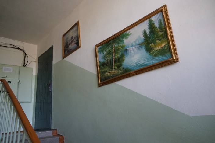 В подъездах домов висят картины. На лестничных площадках стоят цветы в горшках.