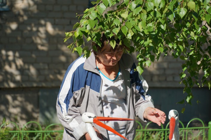 Первое время, говорит она, фигурки ломали, но со временем к ним привыкли, и теперь другие жители помогают Ольге Георгиевне охранять всю эту красоту.