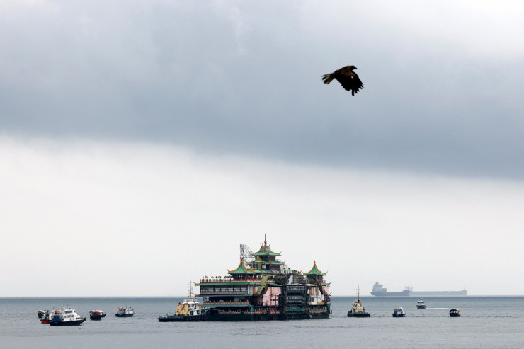 "Плавучий дворец" Jumbo Kingdom, который был известной достопримечательностью Гонконга, затонул через несколько дней после того, как его отбуксировали из гавани, где он стоял почти 50 лет.