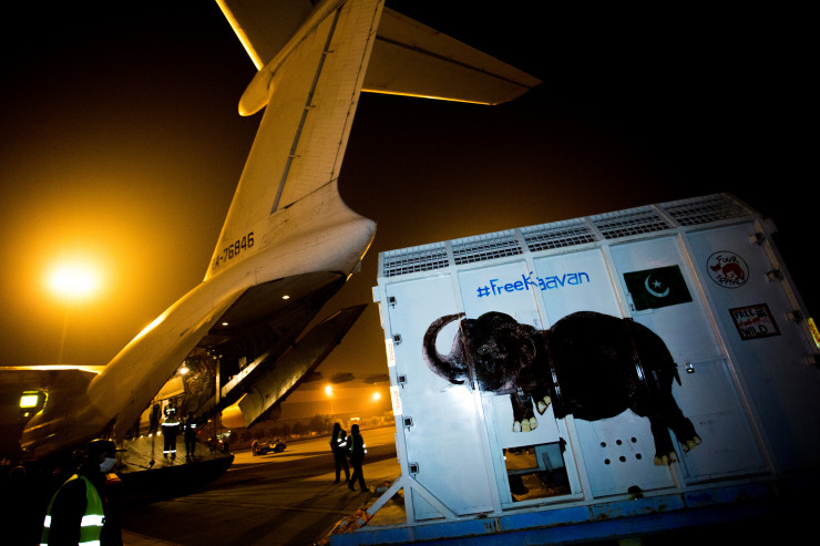 В течение 35 лет слон был заперт в маленьком вольере зоопарка Маргазар в Исламабаде. Ветеринары диагностировали у него недоедание, а после того, как в 2012 году умерла подруга Каавана, он впал в депрессию и у него начались проблемы с психическим здоровьем. Благодаря вмешательству защитников прав животных, а затем американской певицы и актрисы Шер суд в Пакистане принял решение закрыть зоопарк и освободить всех его обитателей.