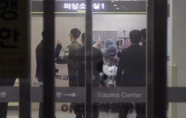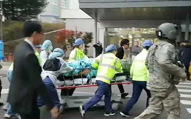 Раненого солдата подобрали южнокорейские военные и вертолетом отправили в больницу. © EPA