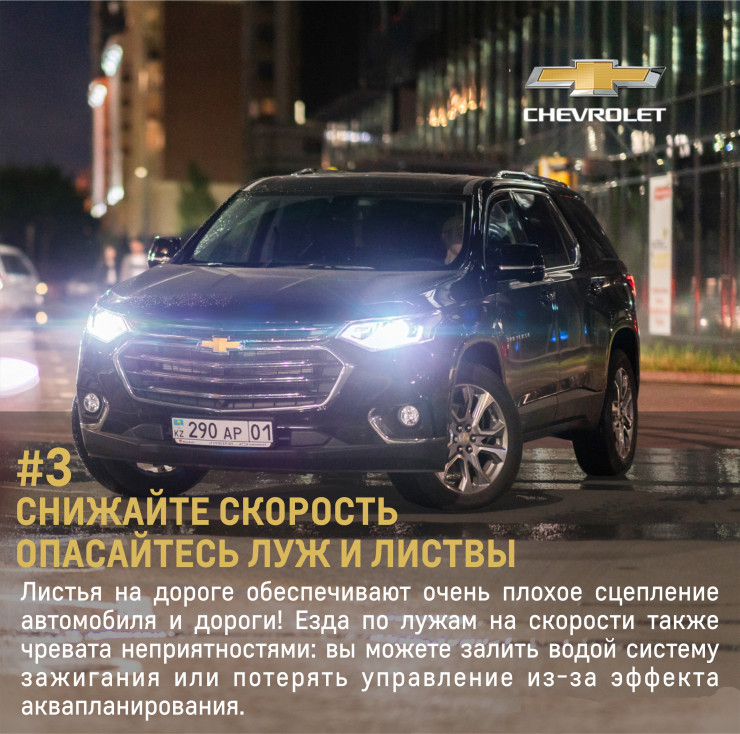 Вождение автомобиля в осенний период имеет некоторые отличия от особенностей управления машиной в сухую и теплую погоду. Необходимо знать, на что обращать внимание перед выездом в ненастье и как управлять машиной на скользком покрытии или в тумане, чтобы не попасть в аварию. Совместно с экспертами Chevrolet мы подготовили топ-5 советов по безопасному вождению автомобиля осенью.
