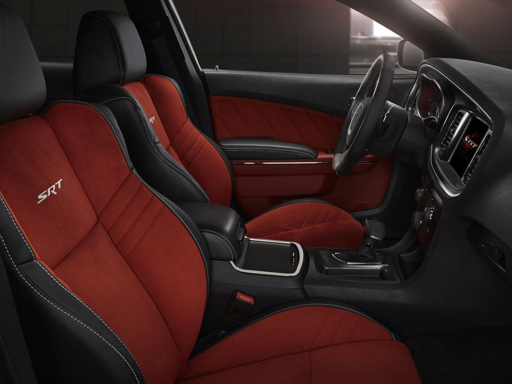 В салоне устанавливаются спортивные сиденья с подогревом и вентиляцией, отделанные кожей Nappa, новое рулевое колесо, цифровая приборная панель, аудиосистема Harmon Kardon и информационно-развлекательная система Uconnect.
