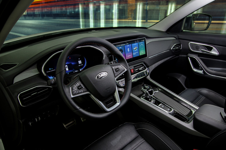 Внутри автомобиля удобный и функциональный дисплей мультимедиа, блок климат-контроля, поддержка CarPlay и Android Auto. Электронный усилитель рулевого управления EPS был оптимизирован под JAC S7 специалистами Volkswagen, что позволило создать эффект вождения этой легендарной немецкой марки.