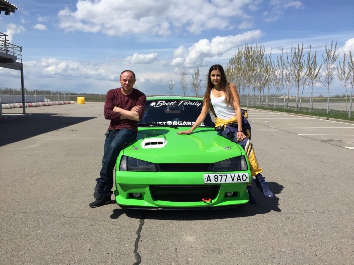 Владелец авто Дмитрий Козлов и профессиональноя пилотесса Яна Пелениченко на автодроме "Сокол".