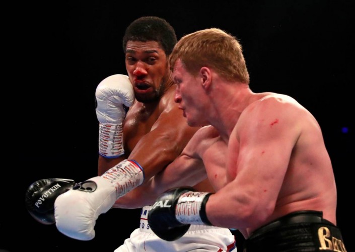 В концовке первого раунда Поветкин сумел потрясти Джошуа, а во втором у британца пошла кровь носом. Затем чемпион смог приноровиться к сопернику и в начале четвертой трехминутки своим ударом нанес рассечение у левого глаза.